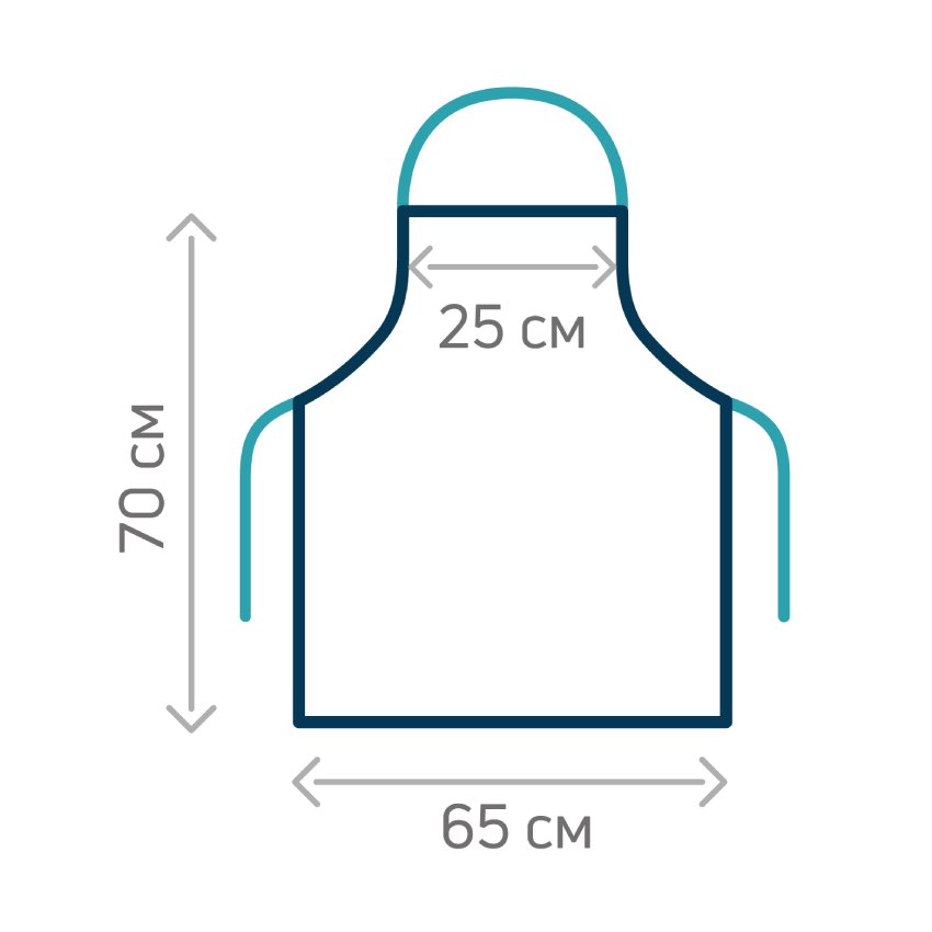 Універсальний розмір надійно захищає одяг і не заважає рухам. Ширина та довжина регулюється за допомогою зав’язок на шиї та поясі. Фартух зручний для роботи як стоячи, так і в русі.