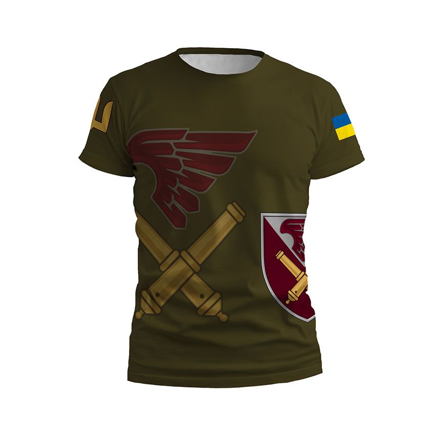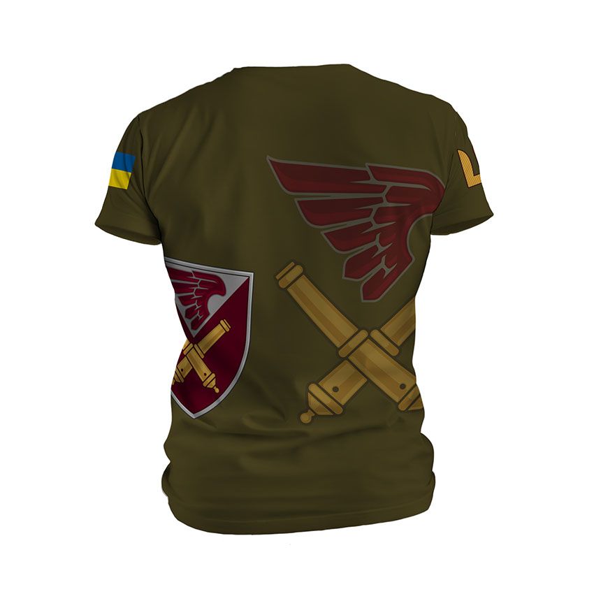 Цей принт відображає серце артилерії – 148-му окрему артилерійську Житомирську бригаду. Крила на емблемі уособлюють швидкість та свободу, а гармата – незламну міць. Дизайн відображає бойовий дух і готовність захищати. Футболка з таким принтом підійде військовим, ветеранам, їхнім родичам та прихильникам української армії. Може стати подарунком тим, хто цінує сміливість та патріотизм.