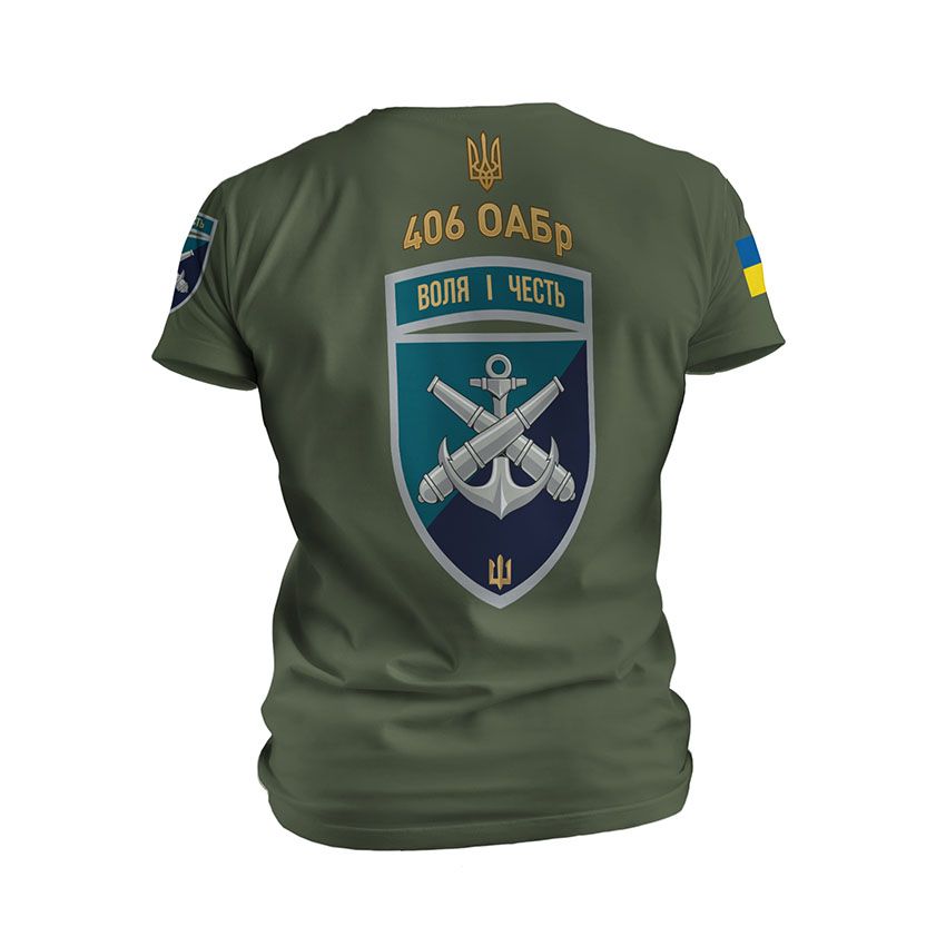 Як купити спортивну чоловічу футболку з принтом «406-та окрема артилерійська бригада. Воля і честь. Will and honor» в Україні та Києві?