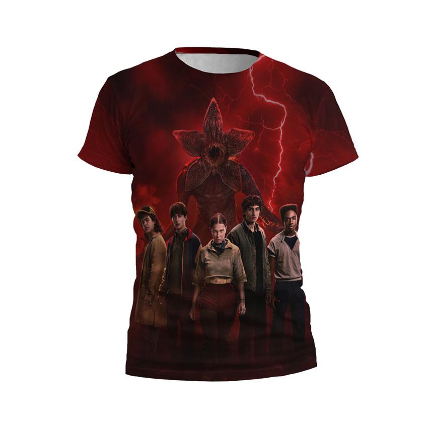Як купити спортивну дитячу футболку з принтом «Дивні Дива. 5 сезон. Демогоргон загроза. Stranger Things. Season 5. Demogorgon threat» в Україні та Києві?