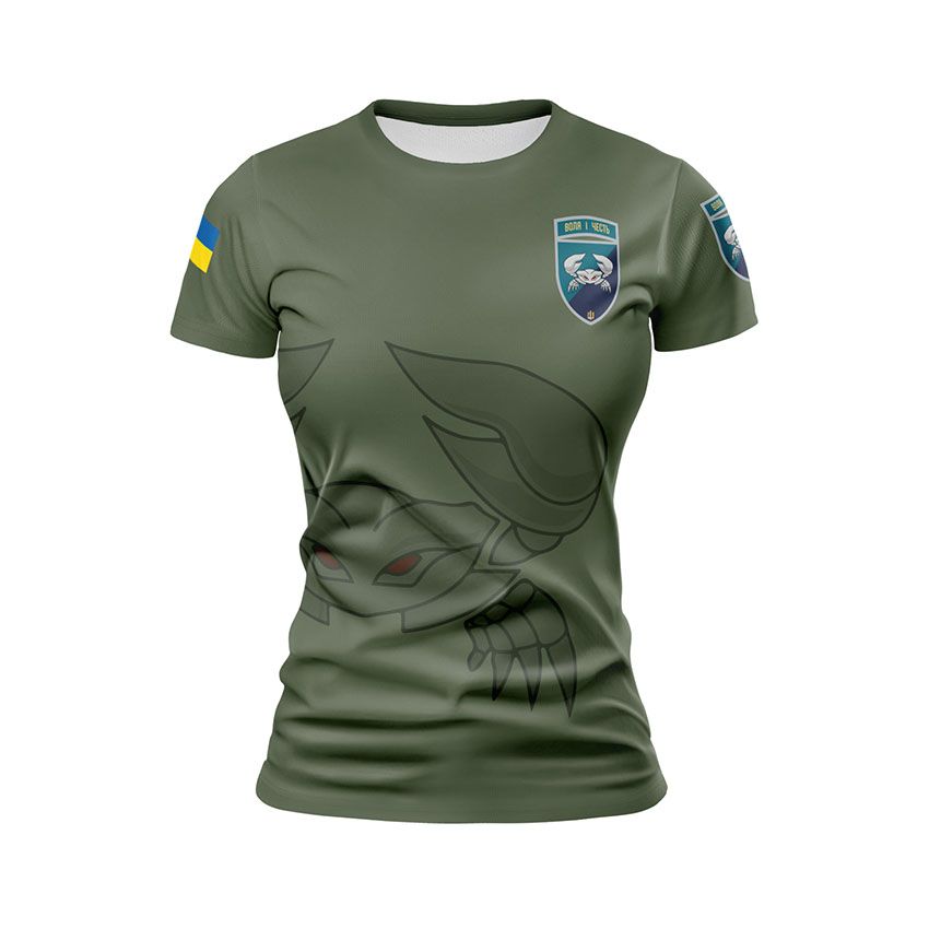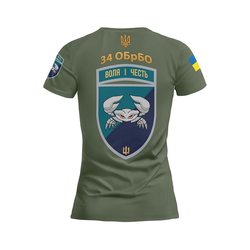 Як купити спортивну жіночу футболку з принтом «34-та окрема бригада берегової оборони. Воля і честь. Will and honor» в Україні та Києві?