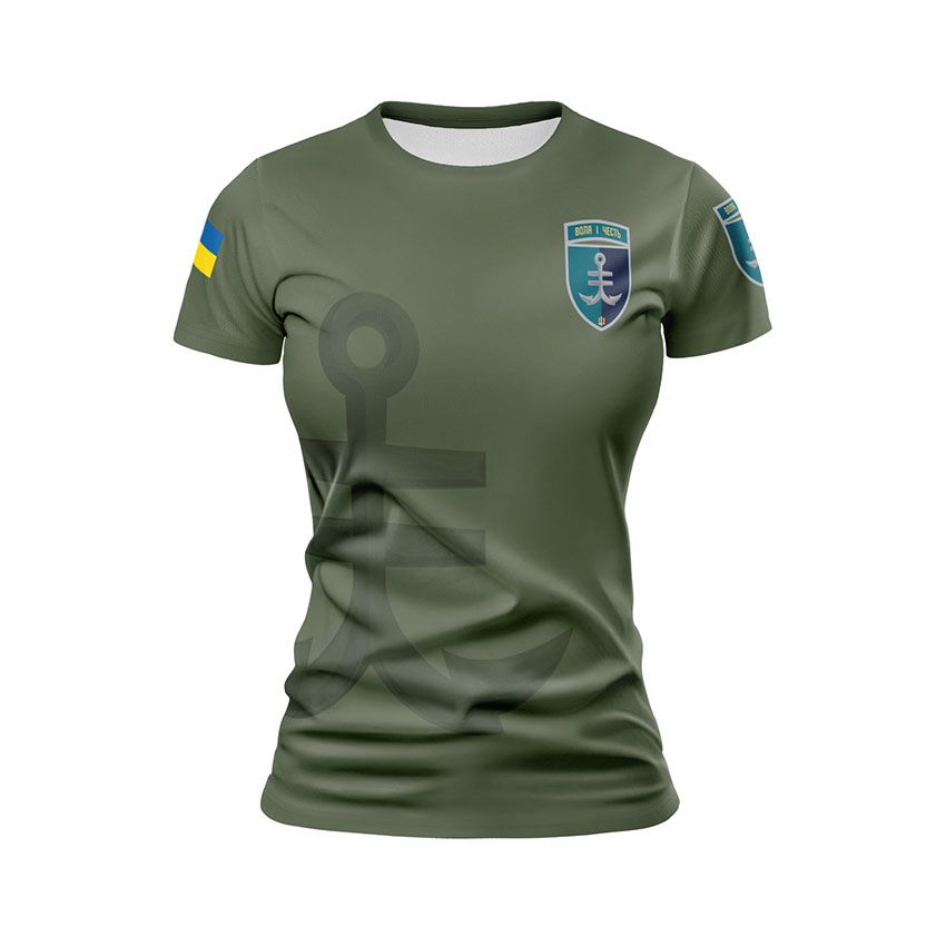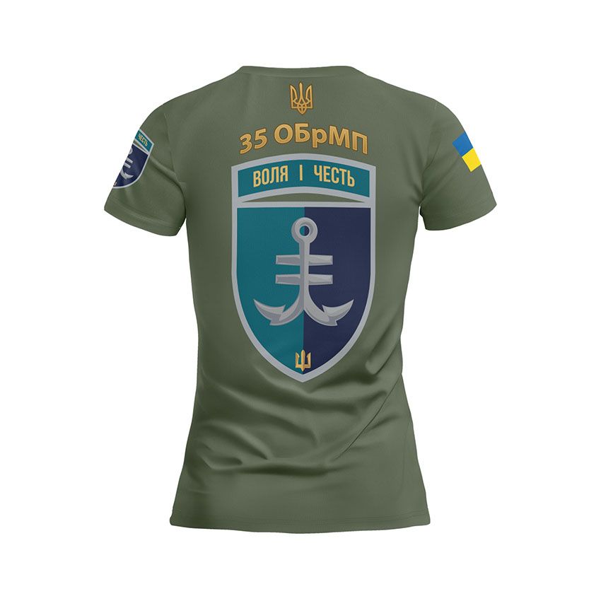 Як купити спортивну жіночу футболку з принтом «35-та окрема бригада морської піхоти. Воля і честь. Will and honor» в Україні та Києві?