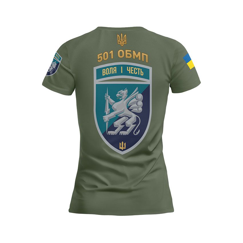 Як купити спортивну жіночу футболку з принтом «501-й окремий батальйон морської піхоти. Воля і честь. Will and honor» в Україні та Києві?