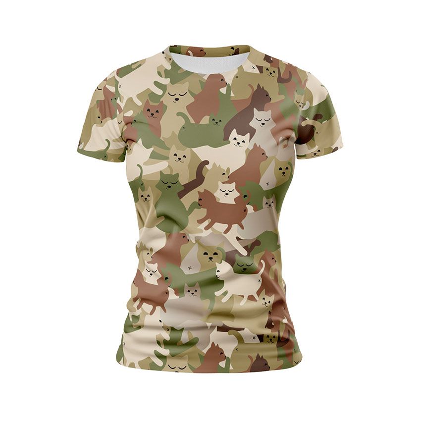 Як купити спортивну жіночу футболку з принтом «Кумедні котики. Камуфляж. Funny cats. Camouflage» в Україні та Києві?