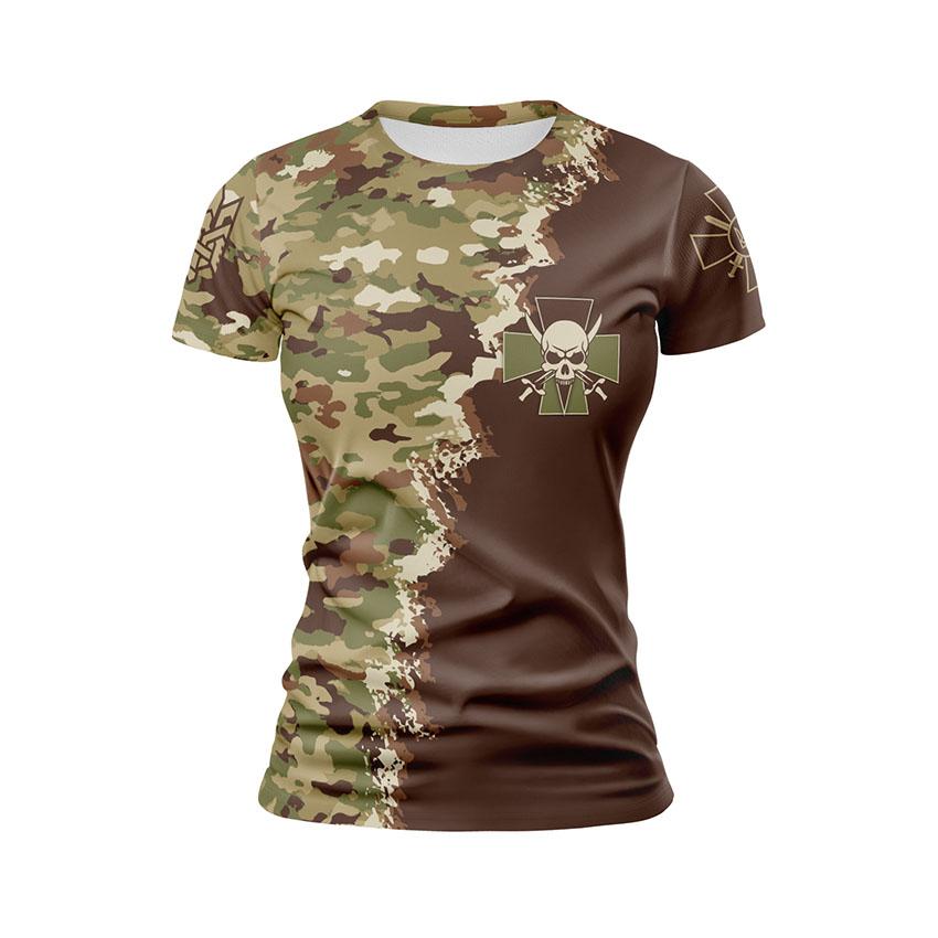 Як купити спортивну жіночу футболку з принтом «72-га окрема механізована бригада. Камуфляж. Camouflage» в Україні та Києві?