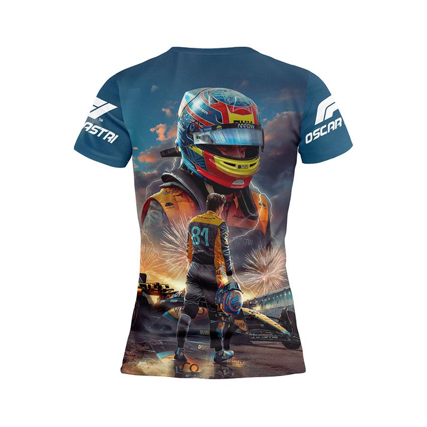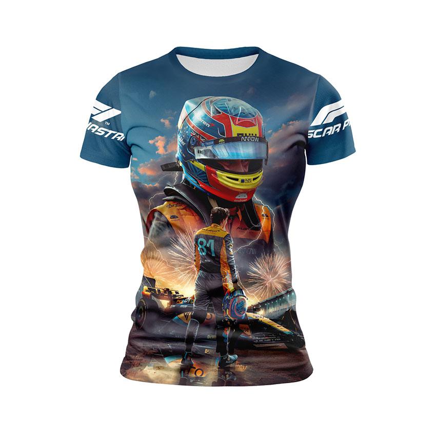 Як купити спортивну жіночу футболку з принтом «Оскар Піастрі. Тріумф номера 81. Формула-1. Oscar Jack Piastri. Triumph of number 81. Formula-1» в Україні та Києві?