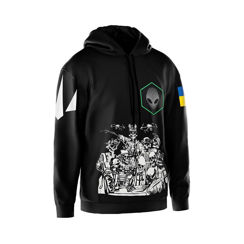 Щоб замовити чоловіче худі з принтом «412-та окрема бригада безпілотних систем «NEMESIS» Команда безсмертних. Undead Squad»: