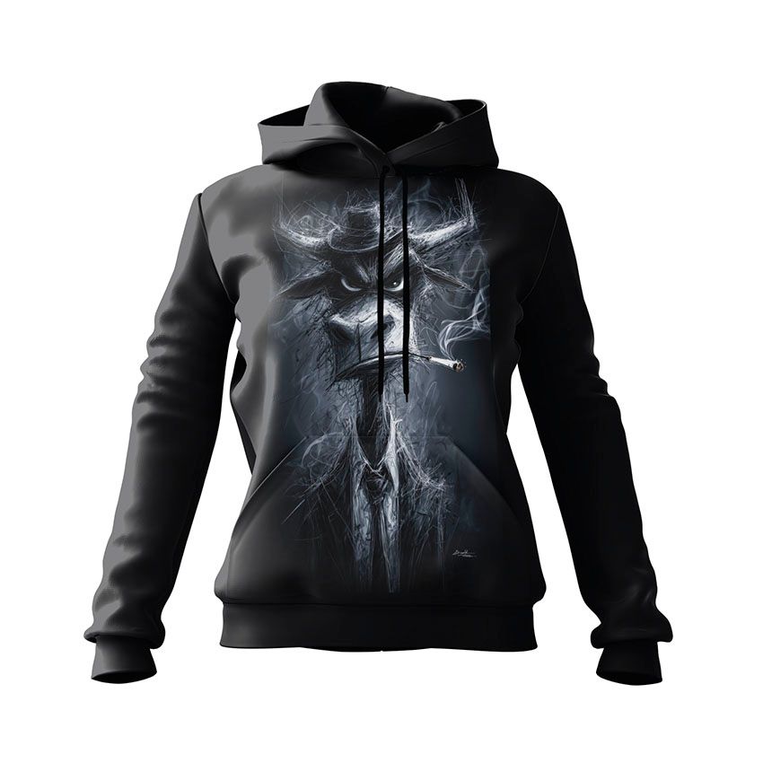 Жіноче худі з принтом «Димний бик. Мафія тварин. Smoky bull. Like a boss. Animal Mafia» — ідеальний вибір для тих, хто цінує комфортний та функціональний одяг. Дана модель підходить як для активного дня у місті, так і для вечірнього релаксу вдома.