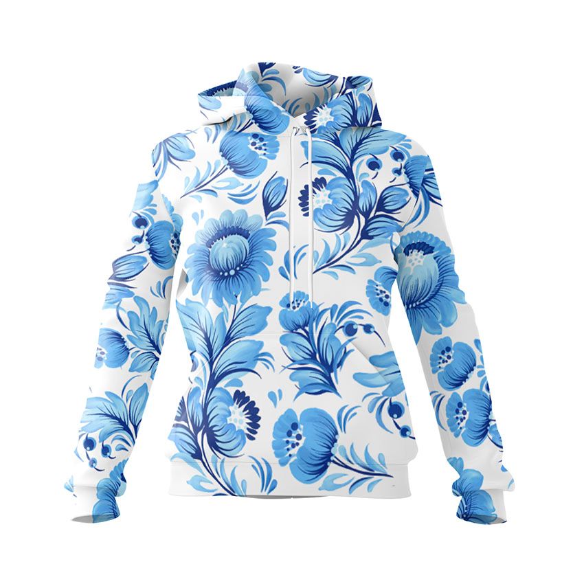 Жіноче худі з принтом «Сині квіти. Периківський розпис. Blue flowers. Petrykivka painting» — ідеальний вибір для тих, хто цінує комфортний та функціональний одяг. Дана модель підходить як для активного дня у місті, так і для вечірнього релаксу вдома.