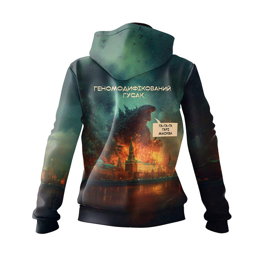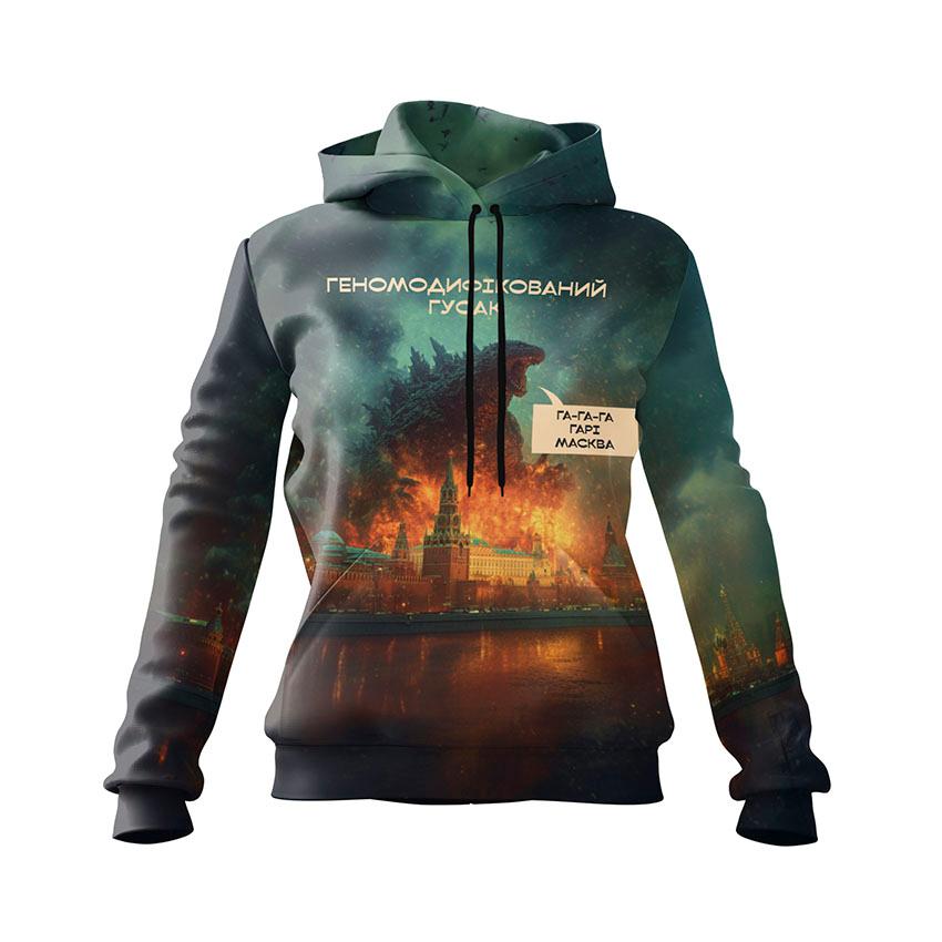 Щоб замовити жіноче худі з принтом «Генномодифікований гусак. Українська сила. Genetically modified goose. Ukrainian strength»: