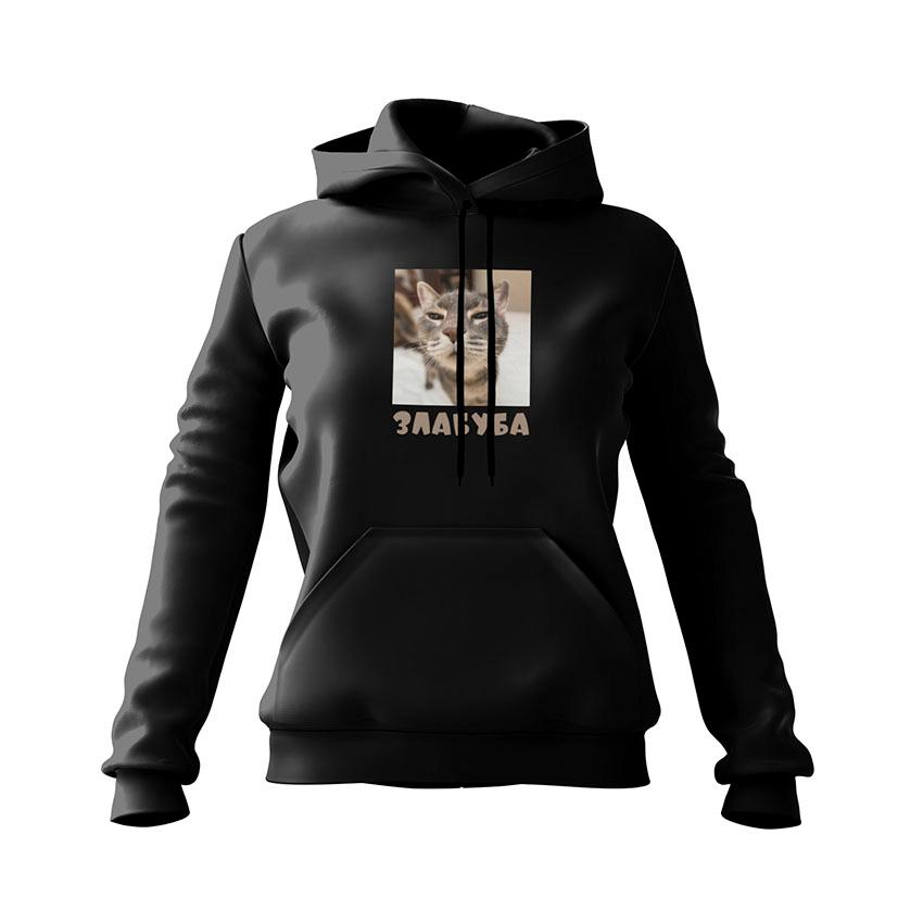Жіноче худі з принтом «Кіт Злабуба. Мем. Cat Zlabuba. Meme» — ідеальний вибір для тих, хто цінує комфортний та функціональний одяг. Дана модель підходить як для активного дня у місті, так і для вечірнього релаксу вдома.