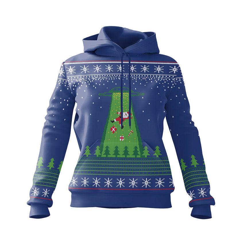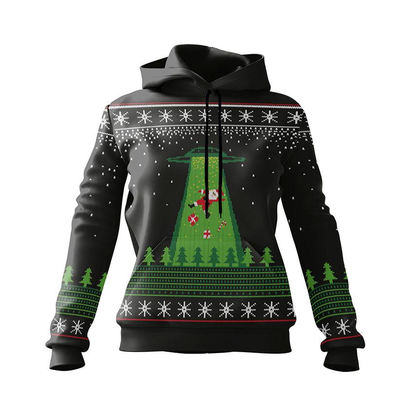 Щоб замовити жіноче худі з принтом «Різдвяна пригода. Санта і прибульці. Christmas Adventure. Santa and Aliens»: