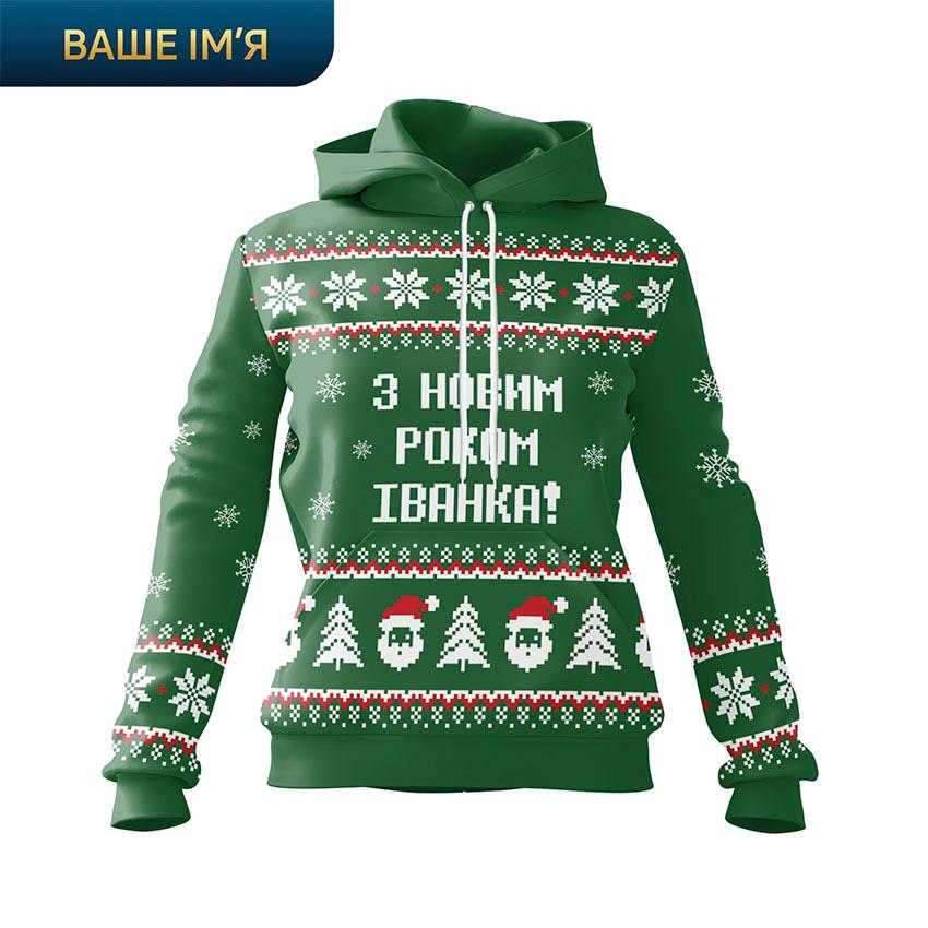 Щоб замовити жіноче худі з принтом «Святкове привітання з ім’ям. Festive Greeting»: