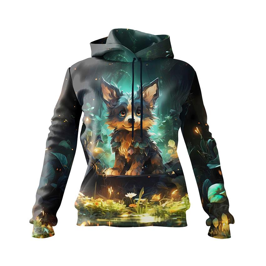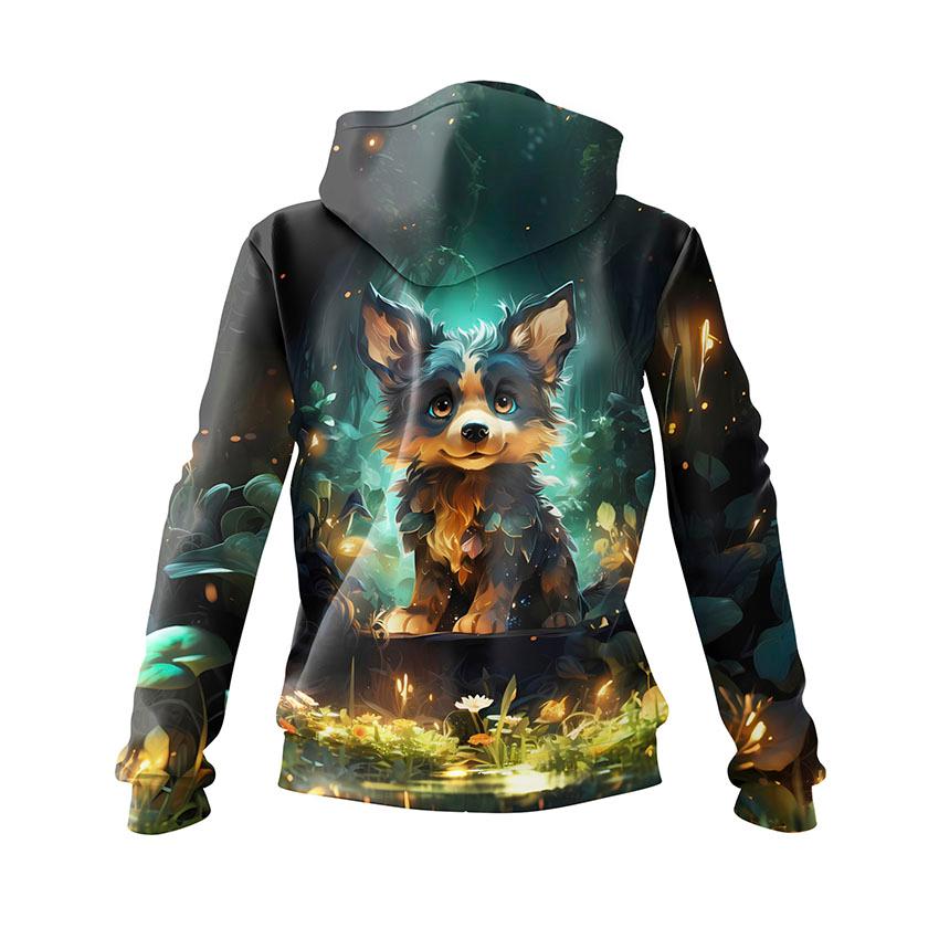 Щоб замовити жіноче худі з принтом «Цуценя. Казковий ліс. Арт. Puppy. Fairytale Forest. Art»: