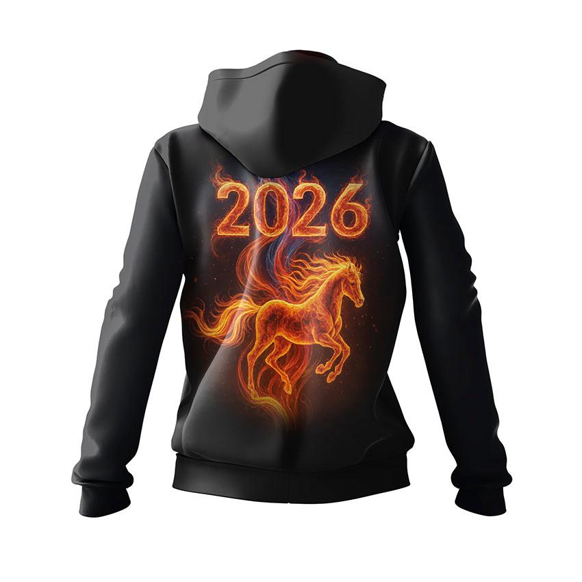Щоб замовити жіноче худі з принтом «Вогняний Кінь 2026. Fire Horse 2026»: