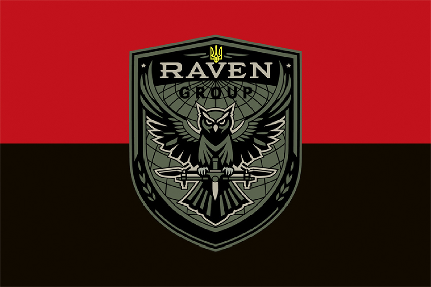Прапор підрозділ «Raven Group» ГУР МО України червоно-чорний з друком виготовляємо з трьох видів тканин: прапорної сітки, атласу та габардину.