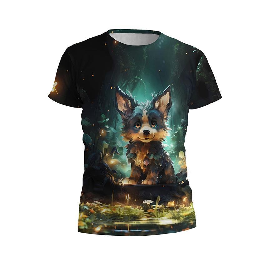 Как купить спортивную детскую футболку с принтом «Щенок. Сказочный лес. Арт. Puppy. Fairytale Forest. Art» в Украине и Киеве?