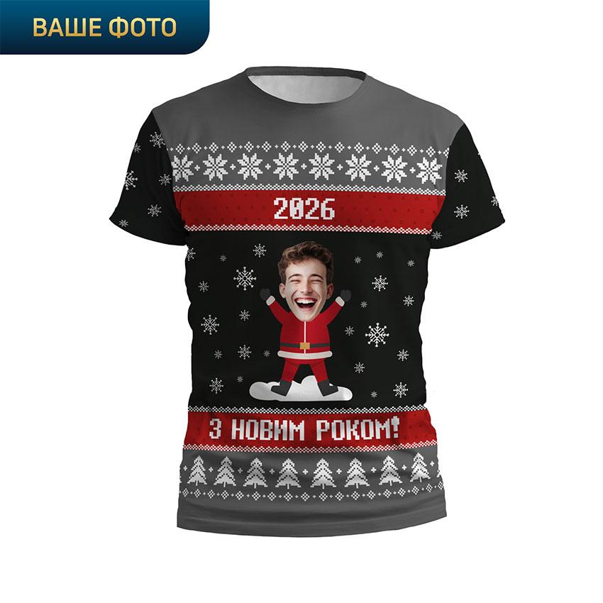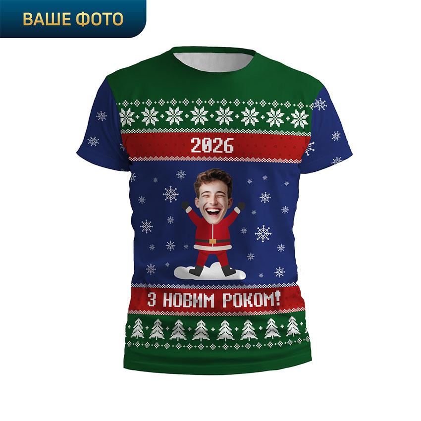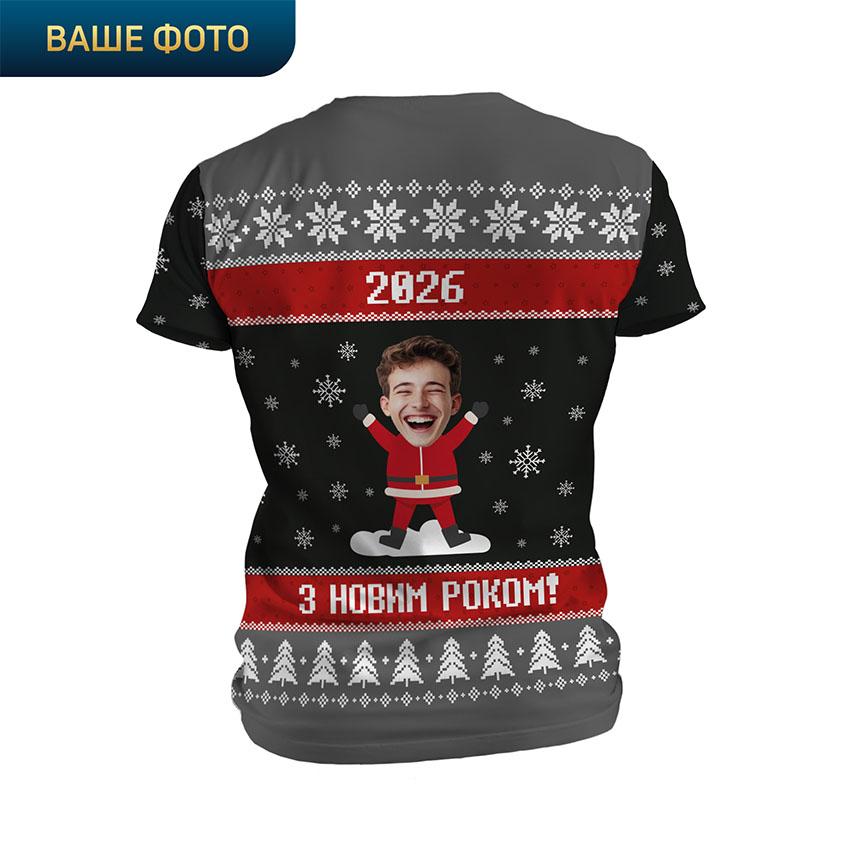 Яркая новогодняя футболка создает праздничное настроение и добавляет радости в зимние дни. Дизайн с надписью «С Новым Годом 2026» и ваша фотография передадут атмосферу праздника и тепла. Футболка с таким принтом подойдет для людей, которые любят оригинальные образы, ценят юмор и праздничный стиль в повседневной одежде.