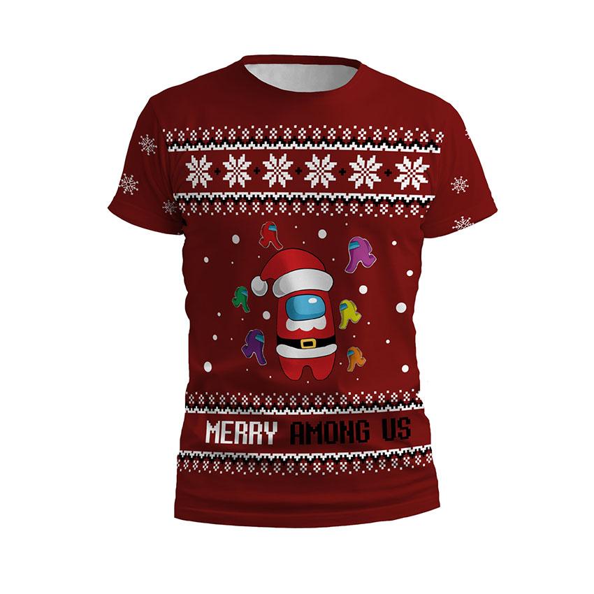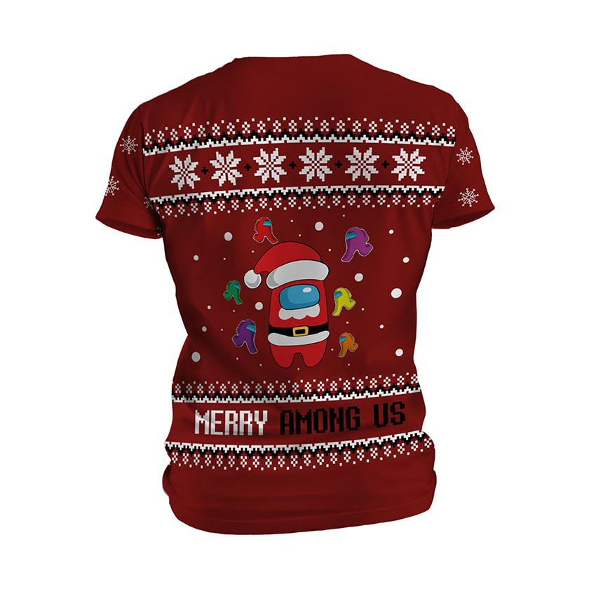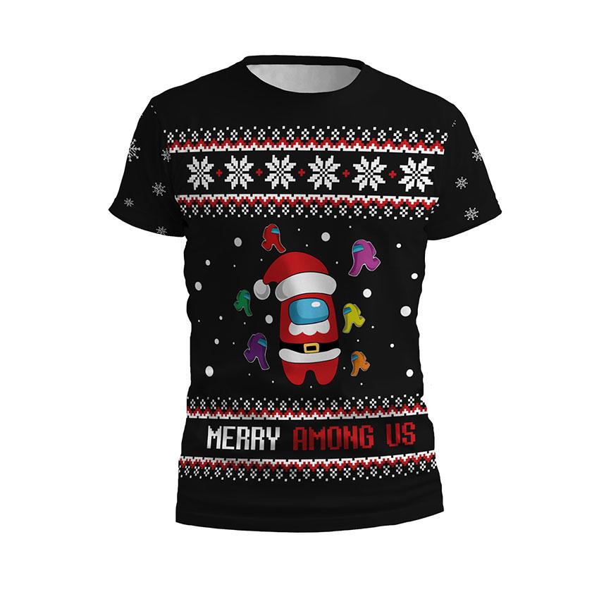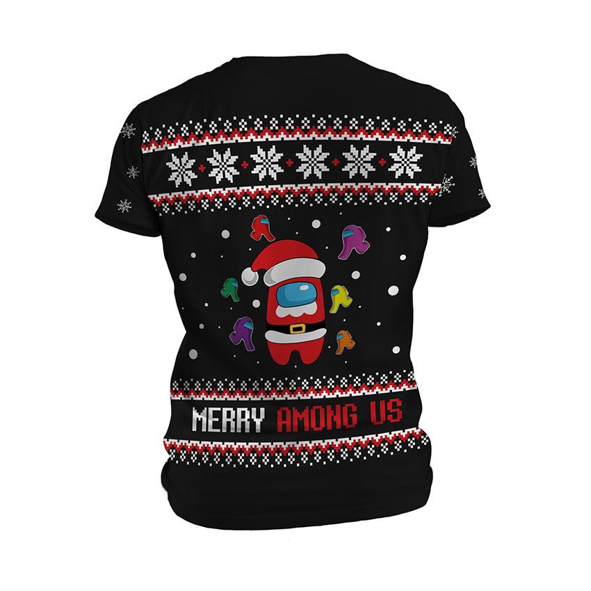 Новогодняя футболка с принтом в стиле Among Us сочетает праздничное настроение и любимую игру. Космический персонаж в шапке Санты создает веселую атмосферу и заряжает позитивом. Идеальный вариант подарка для людей, которые любят яркие образы и хотят выделиться во время зимних праздников.