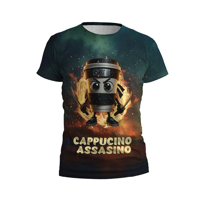 Как купить спортивную мужскую футболку с принтом «Капучино-Ассасино. Огонь силы. Cappuccino Assassino. Fire of power» в Украине и Киеве?