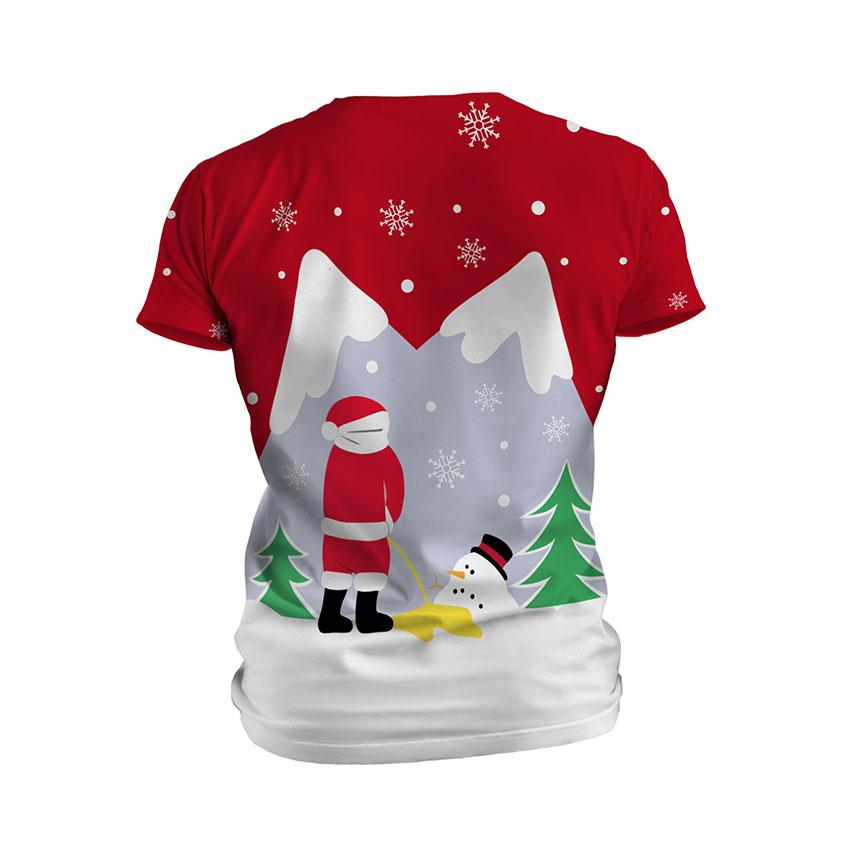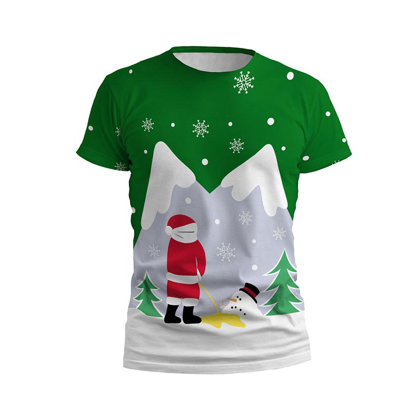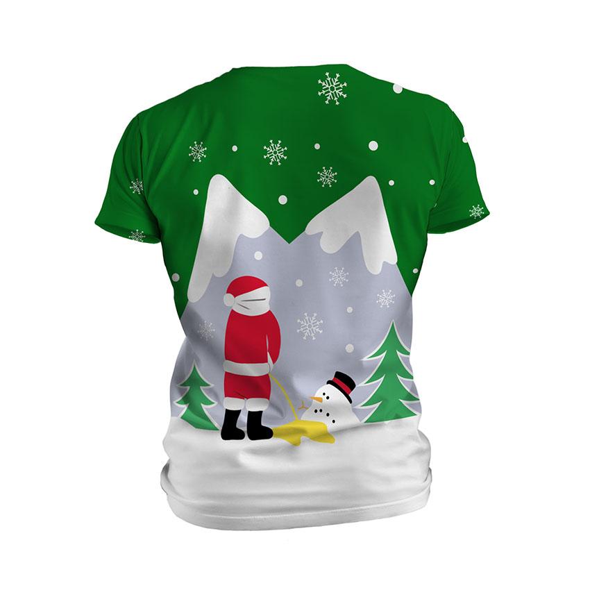 Необычный зимний принт с Сантой и снеговиком создает веселое настроение и добавляет праздничности. Футболка с таким принтом передает легкость и чувство юмора, напоминая, что праздники — это время улыбок и хорошего настроения. Подойдет людям, которые любят оригинальные образы и хотят выделиться во время новогодних праздников.