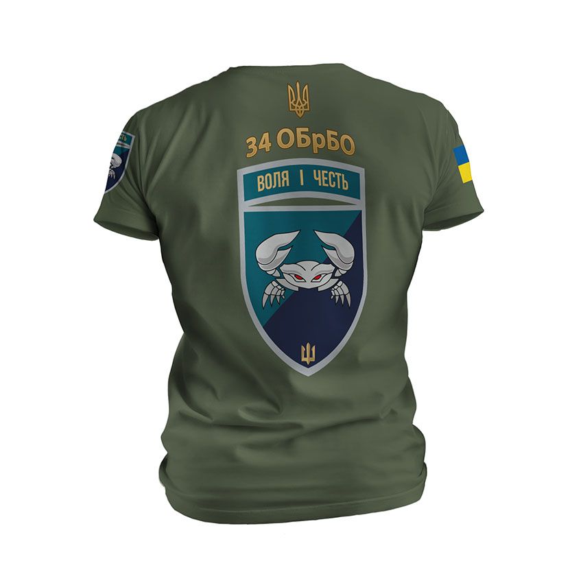 Как купить спортивную мужскую футболку с принтом «34-я отдельная бригада береговой обороны. Воля и честь. Will and honor» в Украине и Киеве?