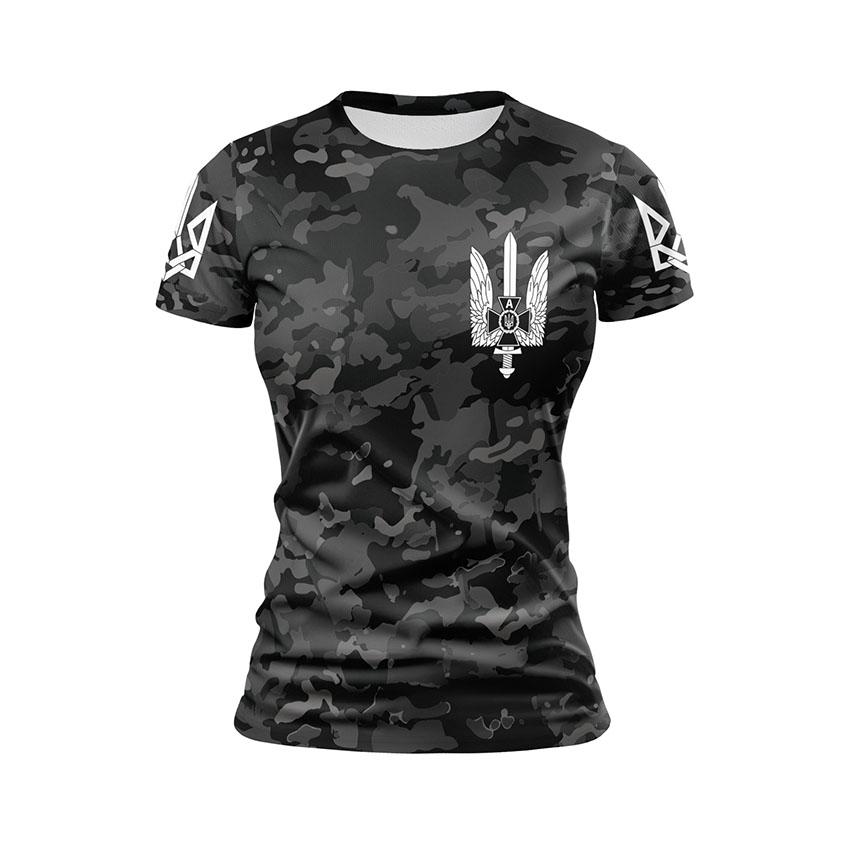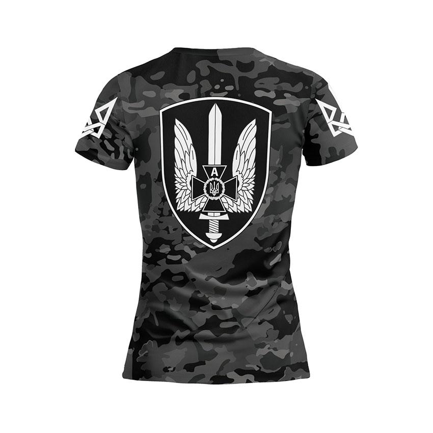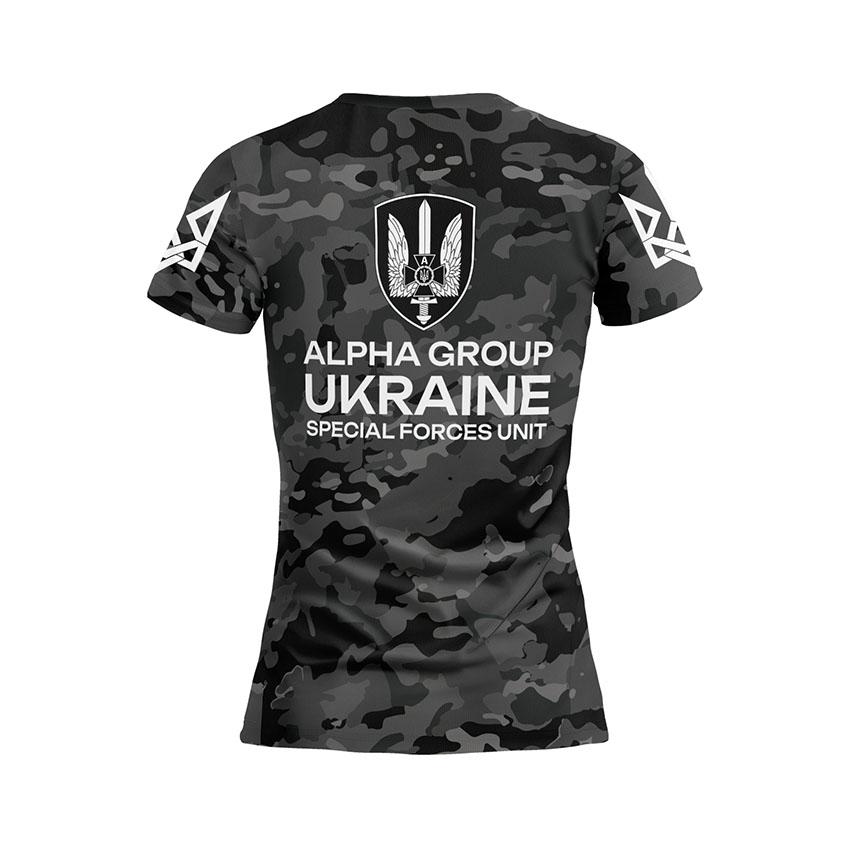 Как купить спортивную женскую футболку с принтом «Альфа. Спецподразделение СБУ. Черный Камуфляж. Black Camo» в Украине и Киеве?