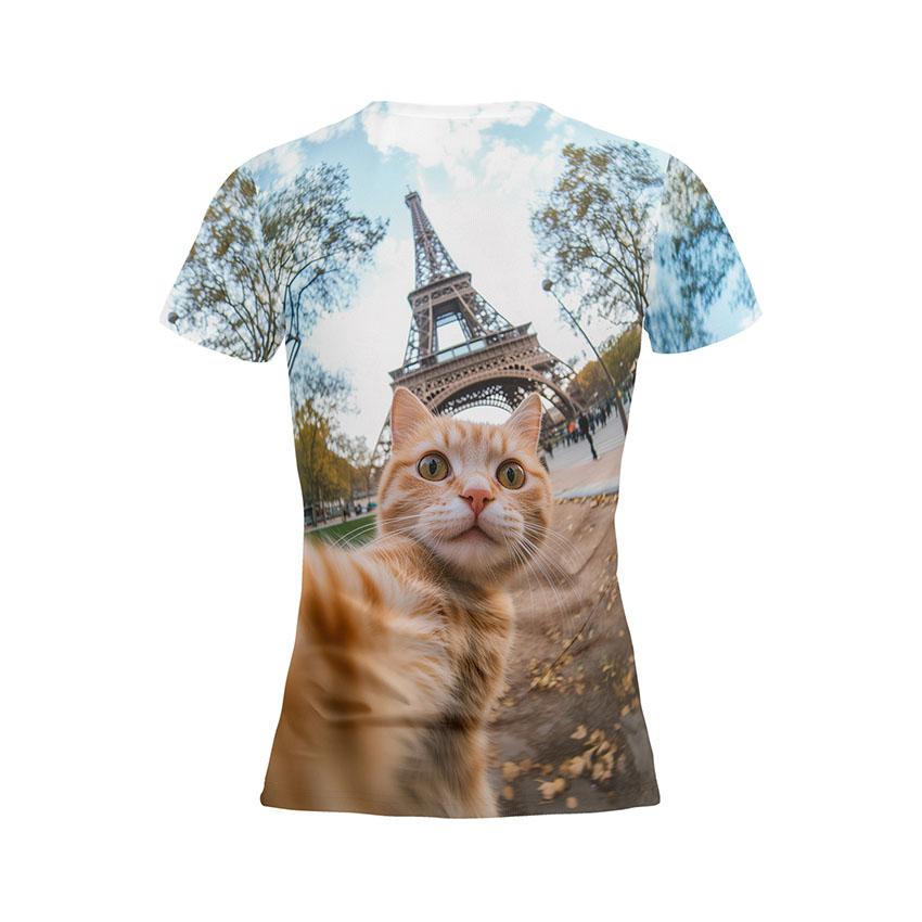 Как купить спортивную женскую футболку с принтом «Рыжий кот в Париже. Red cat in Paris» в Украине и Киеве?