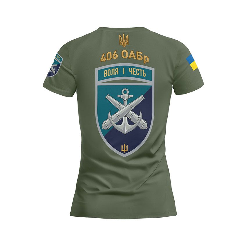 Как купить спортивную женскую футболку с принтом «406-я отдельная артиллерийская бригада. Воля и честь. Will and honor» в Украине и Киеве?