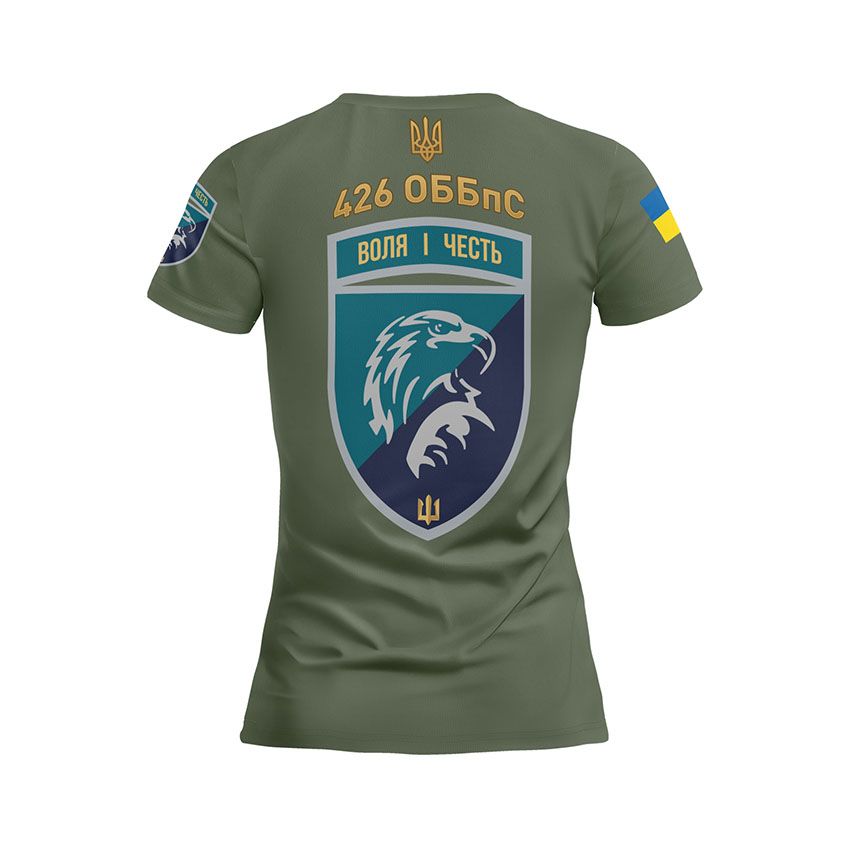Как купить спортивную женскую футболку с принтом «426-й отдельный батальон беспилотных систем. Воля и честь. Will and honor» в Украине и Киеве?