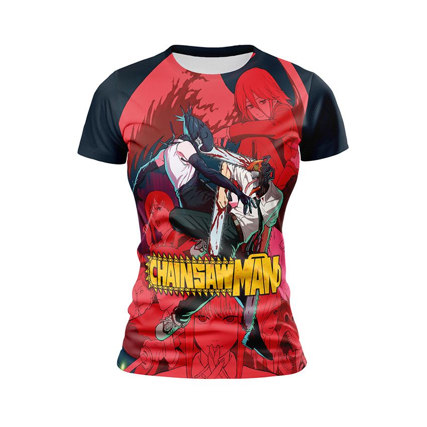 Как купить спортивную женскую футболку с принтом «Человек-бензопила. Хаос борьбы. Chainsaw Man. Chaos of Fight» в Украине и Киеве?