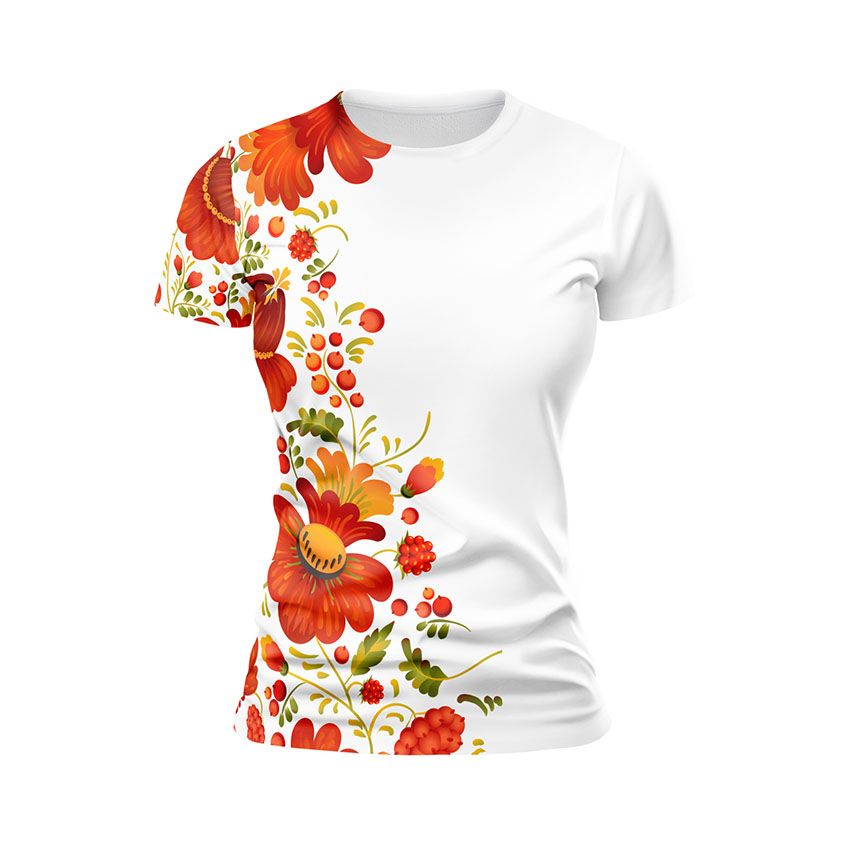 Как купить спортивную женскую футболку с принтом «Цветочная роспись. Floral painting. NEW» в Украине и Киеве?
