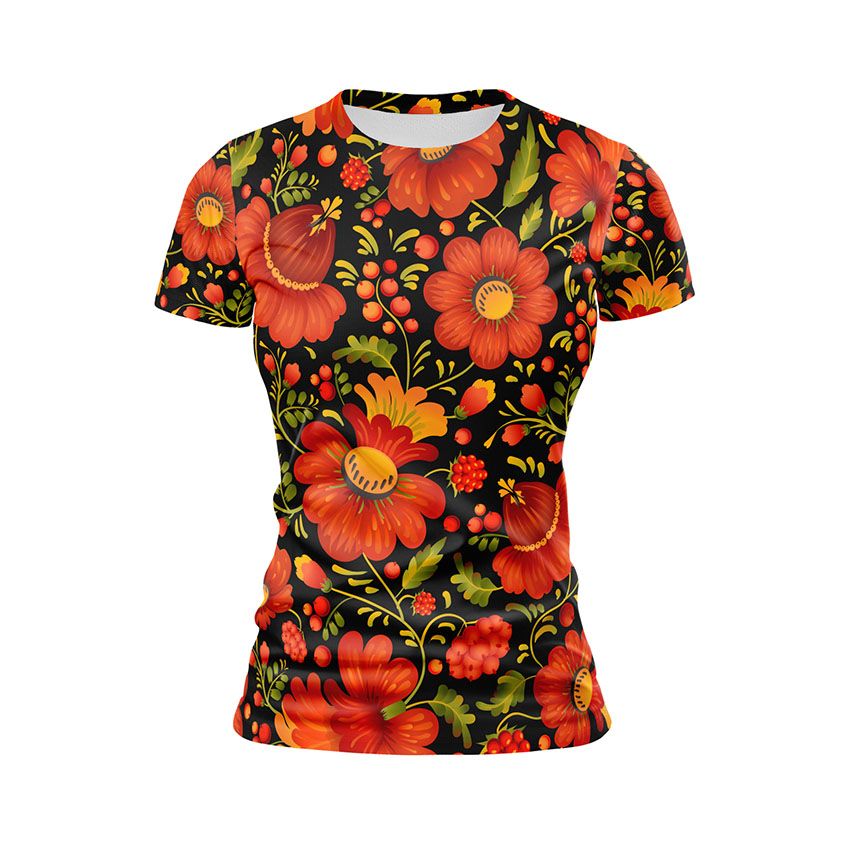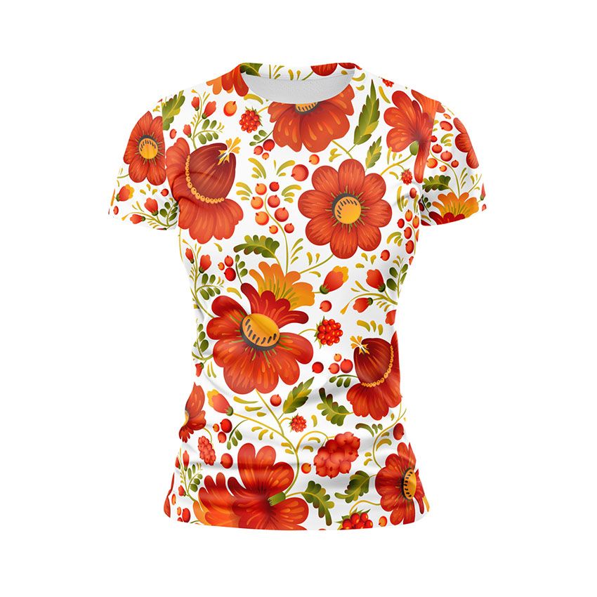 Как купить спортивную женскую футболку с принтом «Цветочная роспись. Floral painting» в Украине и Киеве?