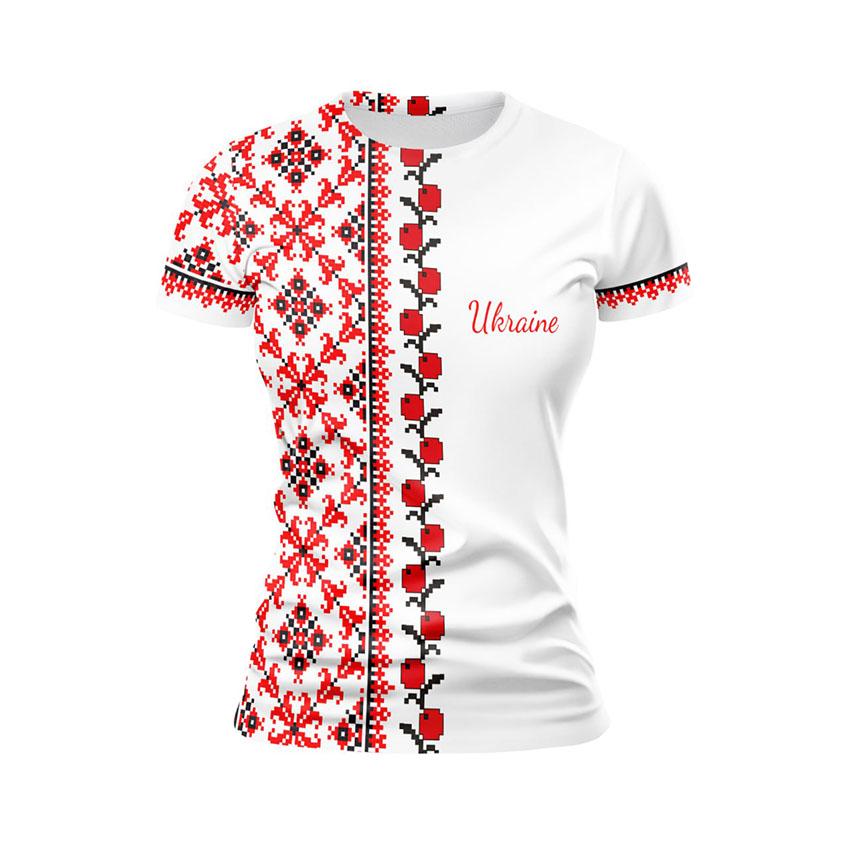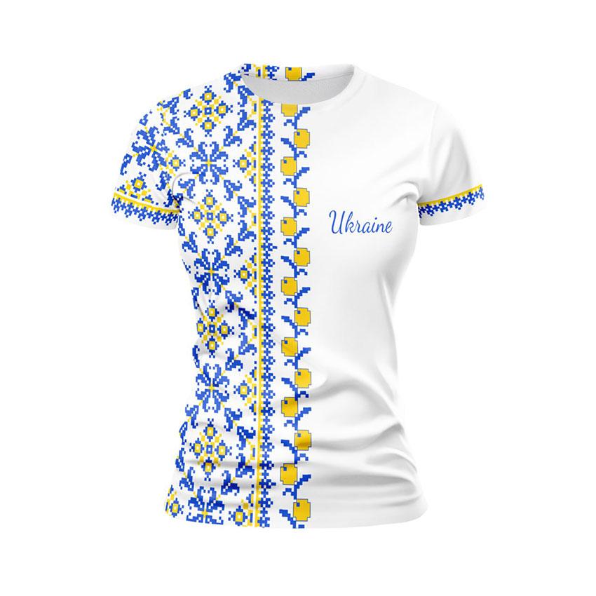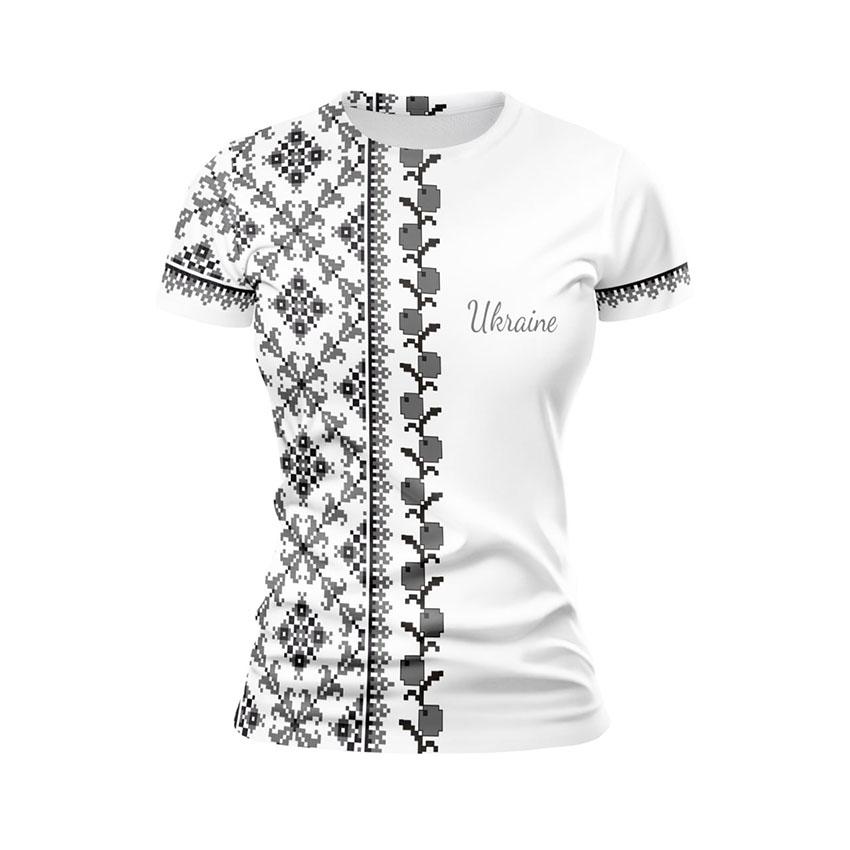 Как купить спортивную женскую футболку с принтом «Украинская культура. Вышиванка. Белая. Ukrainian culture. Embroidery. White» в Украине и Киеве?