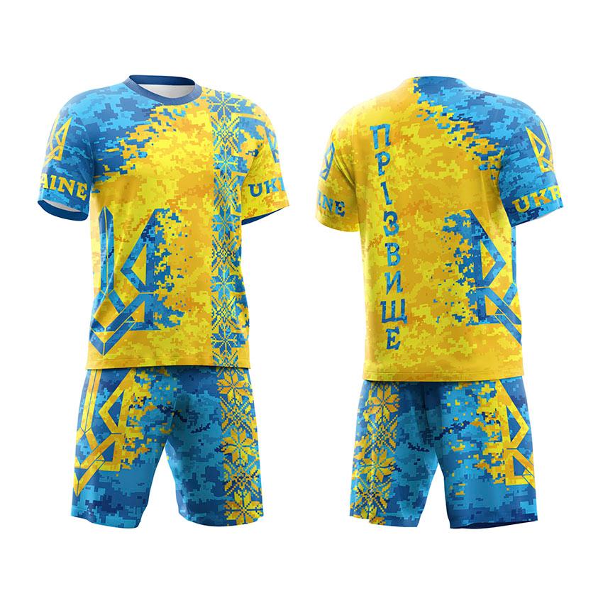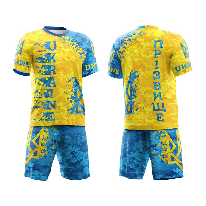 Футбольная форма мужская с именем и логотипом команды с принтом «Украина. Ukraine. Пиксель. Желто-голубой»
