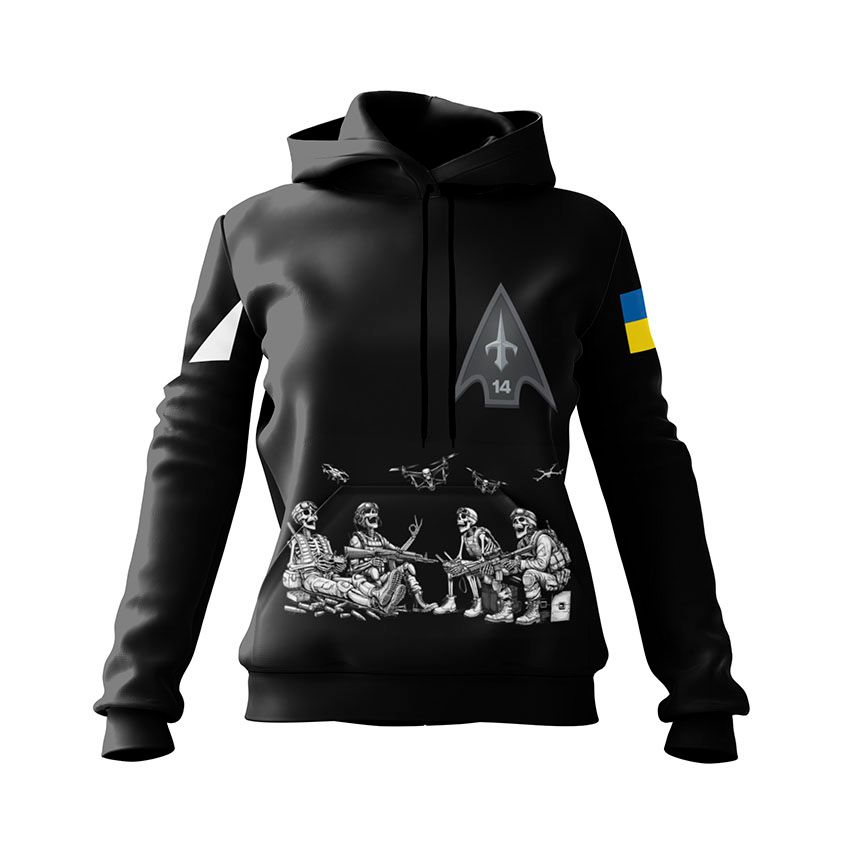 Чтобы заказать женское худи с принтом «14-й отдельный полк беспилотных авиационных комплексов. Бессмертные дроны. Immortal Drones»: