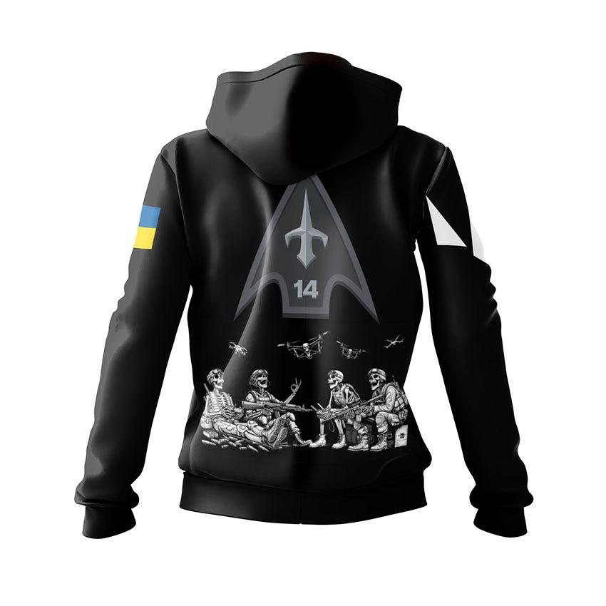 Принт изображает скелетов-операторов дронов, которые продолжают сражаться даже после смерти. Это символ несокрушимости, технического мастерства и самопожертвования воинов ВСУ. Худи с таким принтом подойдет тем, кто связан с Силами беспилотных систем Вооруженных сил Украины, военными технологиями или просто чтит дух сопротивления и свободу Украины.