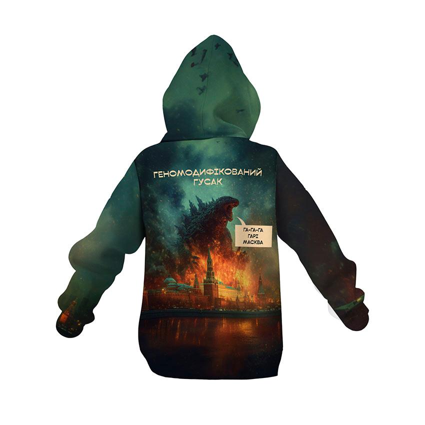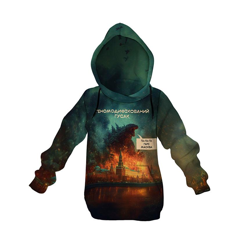 Чтобы заказать детское худи с принтом «Генномодифицированный гусь. Украинская сила. Genetically modified goose. Ukrainian strength»: