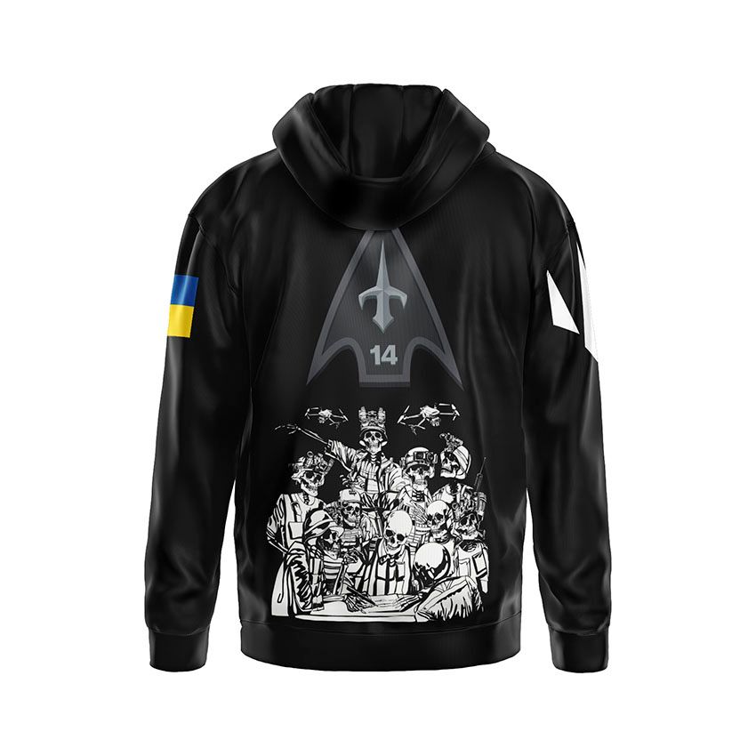Чтобы заказать мужское худи с принтом «14-й отдельный полк беспилотных авиационных комплексов. Команда бессмертных. Undead Squad»: