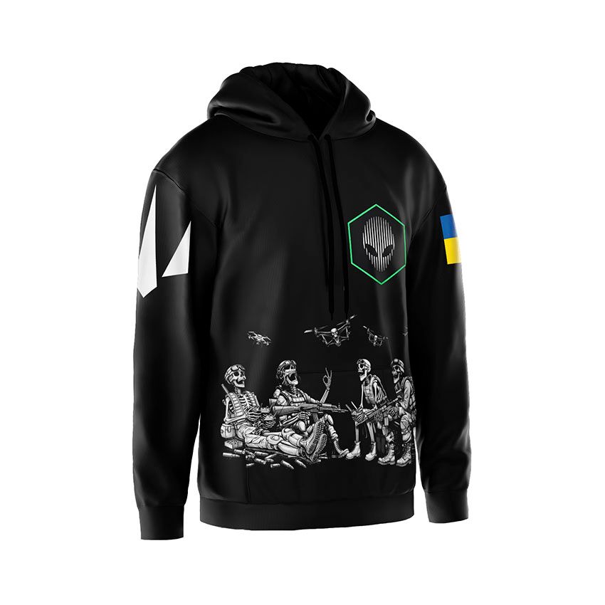 Чтобы заказать мужское худи с принтом «412-я отдельная бригада беспилотных систем «NEMESIS». Бессмертные дроны. Immortal Drones»: