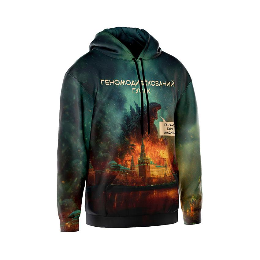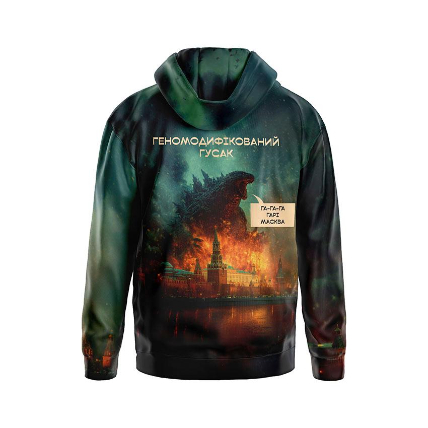 Чтобы заказать мужское худи с принтом «Генномодифицированный гусь. Украинская сила. Genetically modified goose. Ukrainian strength»: