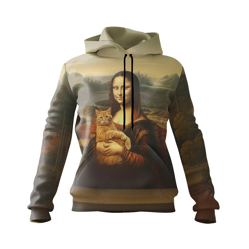 Чтобы заказать женское худи с принтом «Мона Лиза с котом. Mona Lisa with a cat»: