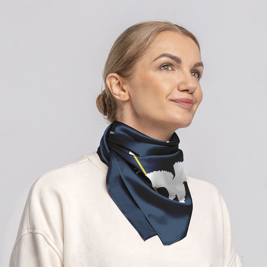 Принт на платок наносится сублимационным методом на современном японском оборудовании .