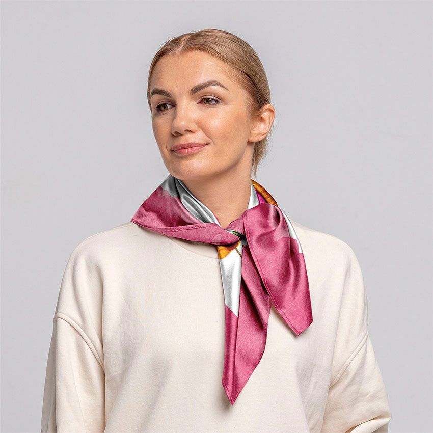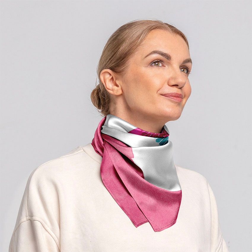 Платок из шелка армани легко можно завязать удобным для Вас способом: на голову, шею, в волосы, на одежду или аксессуары.