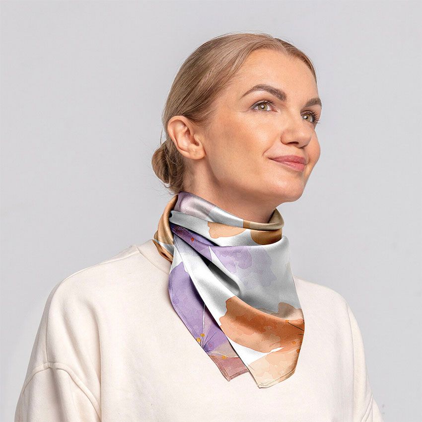 Платок из шелка армани легко можно завязать удобным для Вас способом: на голову, шею, в волосы, на одежду или аксессуары.