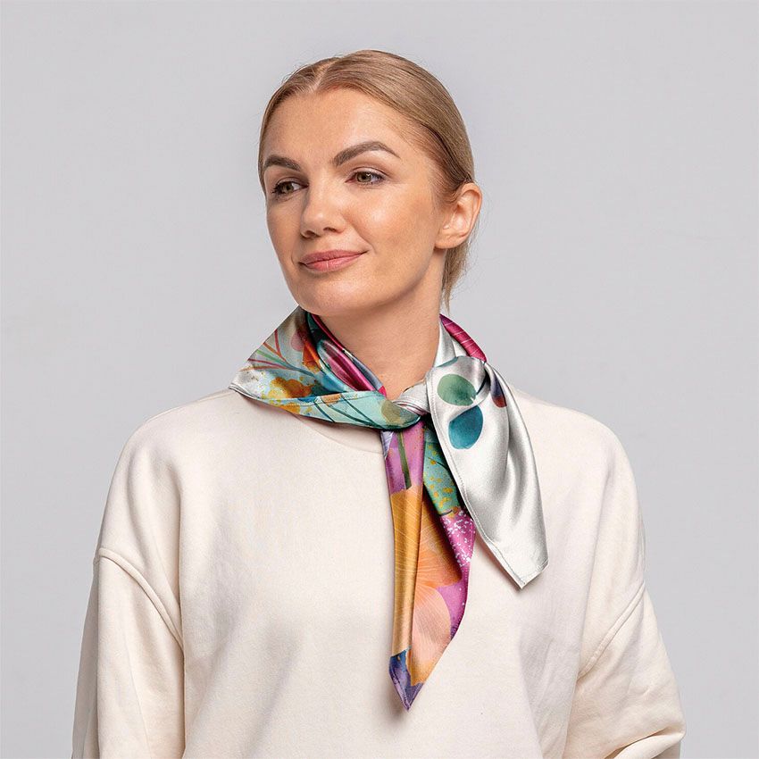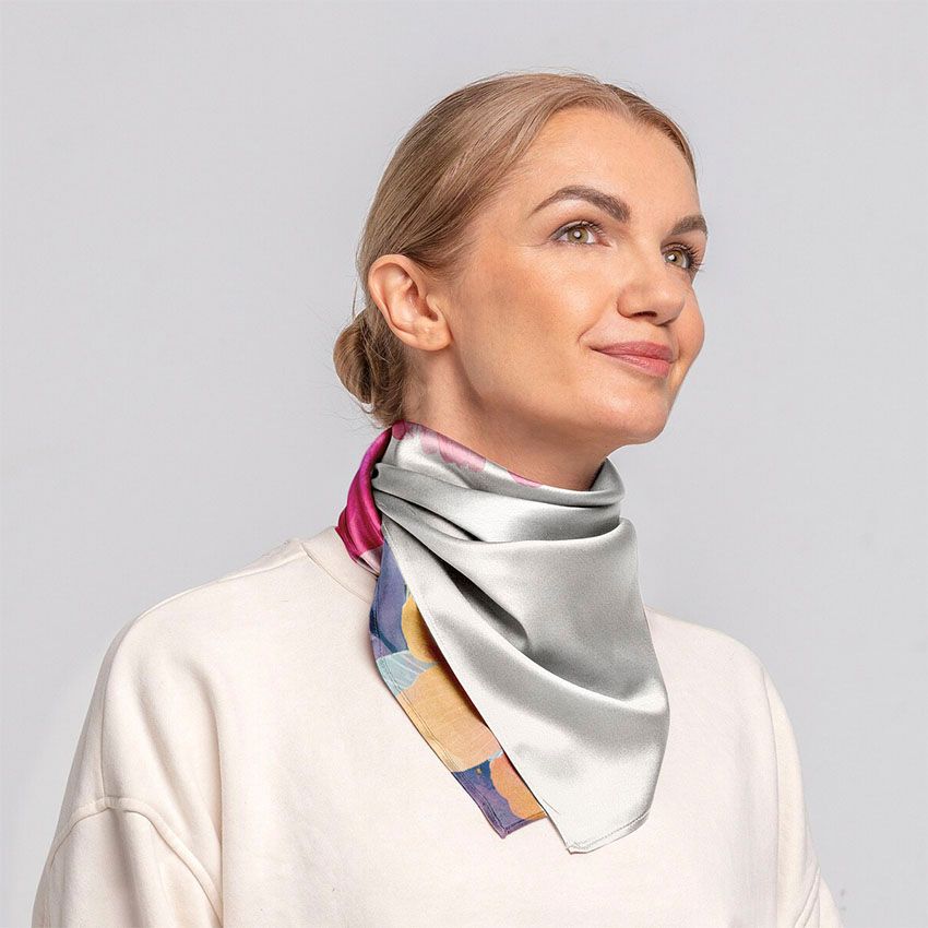 Платок из шелка армани легко можно завязать удобным для Вас способом: на голову, шею, в волосы, на одежду или аксессуары.
