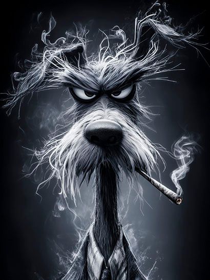 Этот принт изображает харизматичного пса с сигаретой в роли мафиози, который излучает холодное спокойствие и уверенность. Такой плед станет оригинальным акцентом в комнате или подарком для тех, кто ценит иронию, любит нестандартные образы и обладает чувством стиля. Идеальный выбор для друзей, коллег и ценителей необычных принтов.