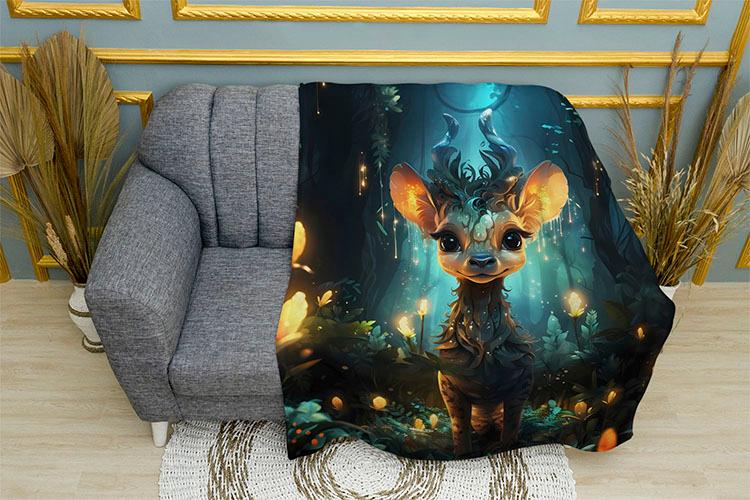 Ткань пледа «Оленёнок. Сказочный лес. Арт. Deer. Fairytale forest. Art»