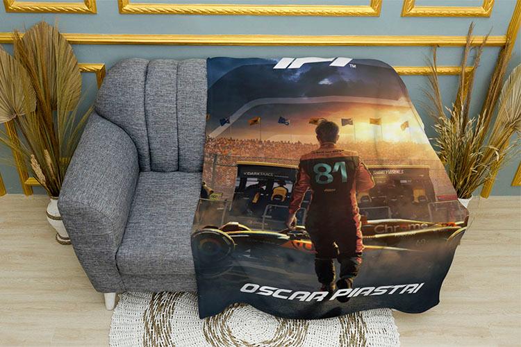 Ткань пледа «Оскар Пиастри. Путь к победе. Формула-1. Oscar Piastri. The path to victory. Formula-1»