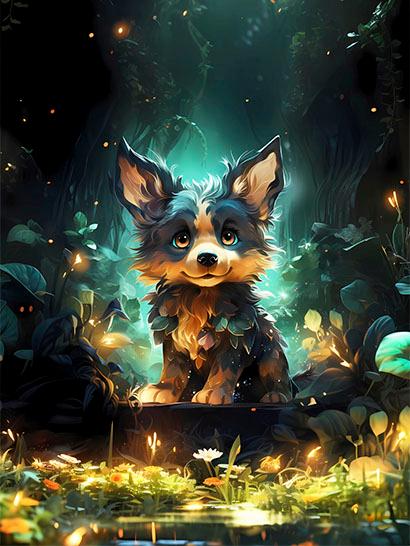Ткань пледа «Щенок. Сказочный лес. Арт. Puppy. Fairytale Forest. Art»